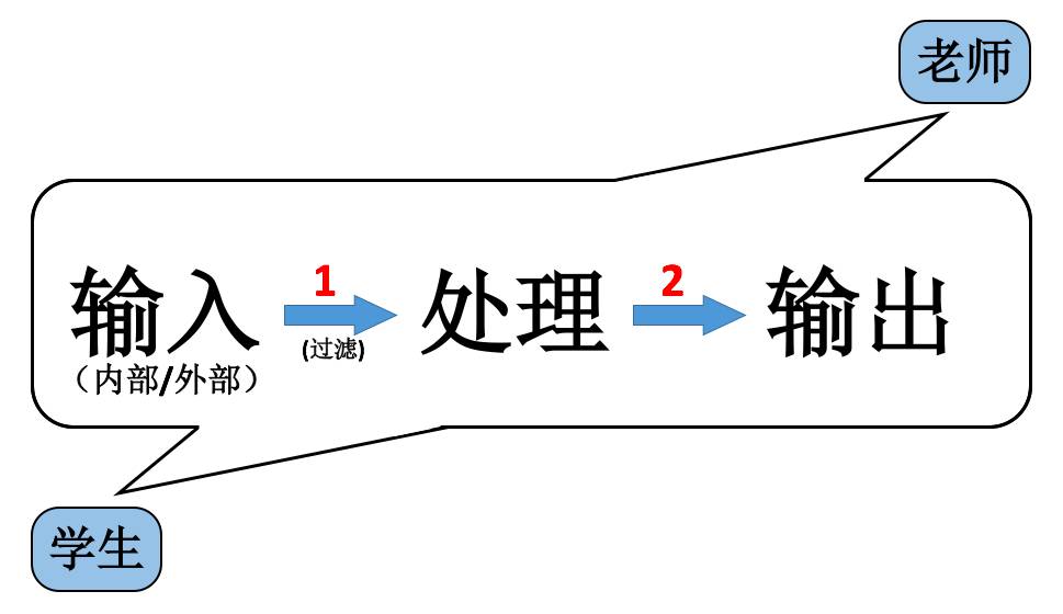 站在老师的角度,我们默认TA的输入-处理的环节大致没有问题,不然也就不能称之为老师了。老师教学的难点其实是第二环节,也就是处理后输出的过程。