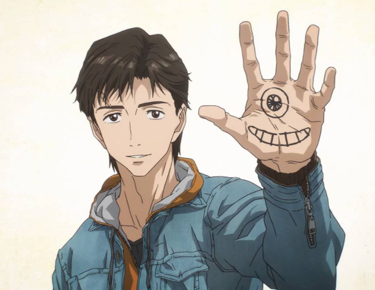 故事的主人公泉新一(貌似日本的主人公都喜欢叫新一),也被寄生兽攻击,但是阴差阳错寄生兽没有侵占他的大脑,最后寄生到了他的手上,于是原来的寄生状态变成了共生。新一也给这个新来的入侵者起了个名字:小右。