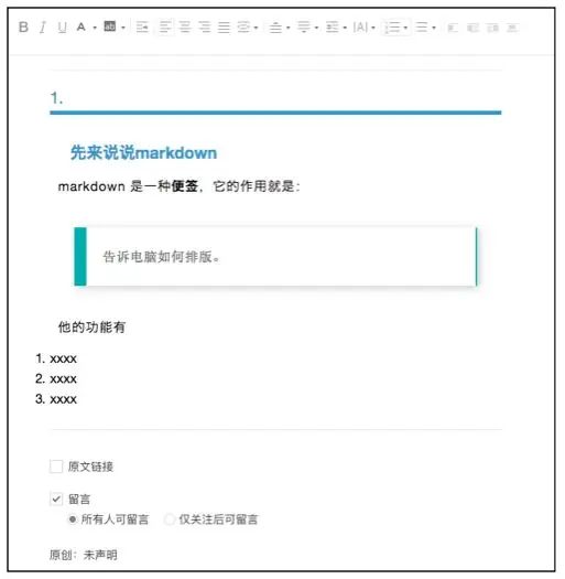 总结一下,所谓的markdown就是你在写作的时候,给电脑的留言,告诉他要如何处理相应的文字,是加粗还是引用,在文章中给他留个便签就可以了。