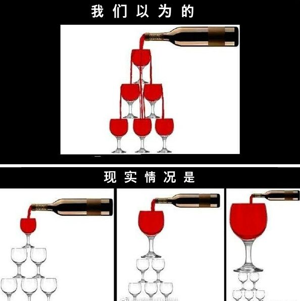 我觉得邓小平说的是对的,只不过大家对于“共同富裕”的理解有些偏差。正常的情况,应该是介于两幅图中间,也就是上层确实占据了大部分财富,但从绝对数量来说,每个阶层都有提升。
