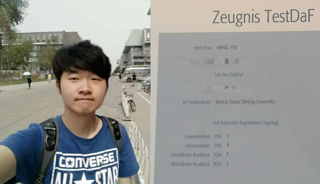 后来去北大参加了德福的考试,拿到了一个说得过去的德福成绩。