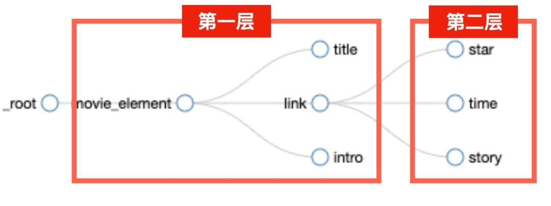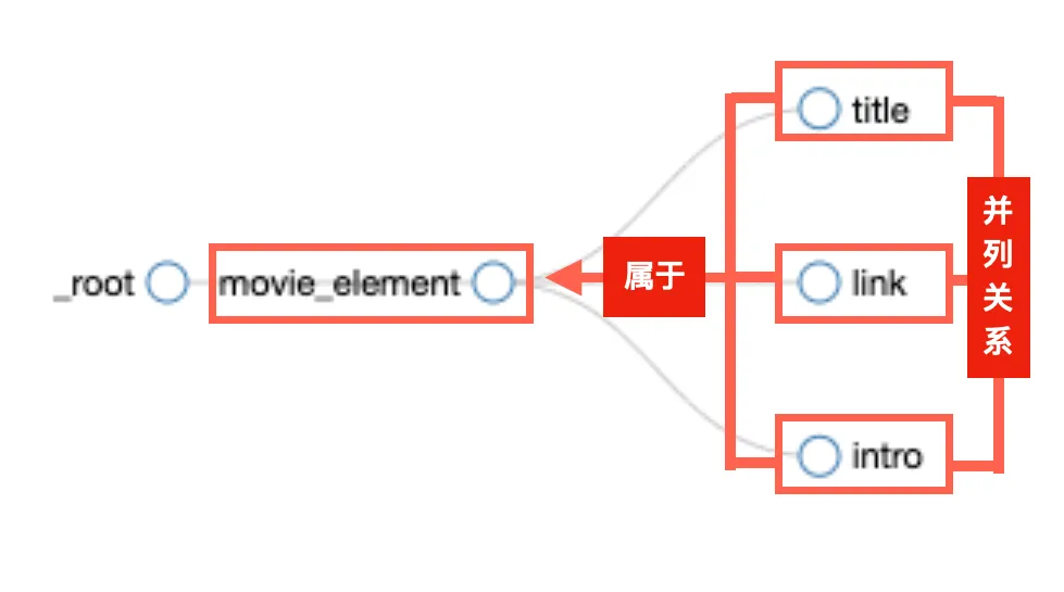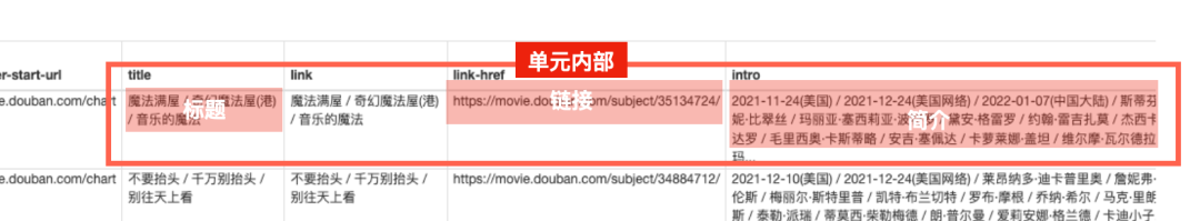 这是因为我们先选择了“电影”这个“重复单元”,然后把标题,简介,链接都“包”在了里面,所以它们才显示在了一行内。