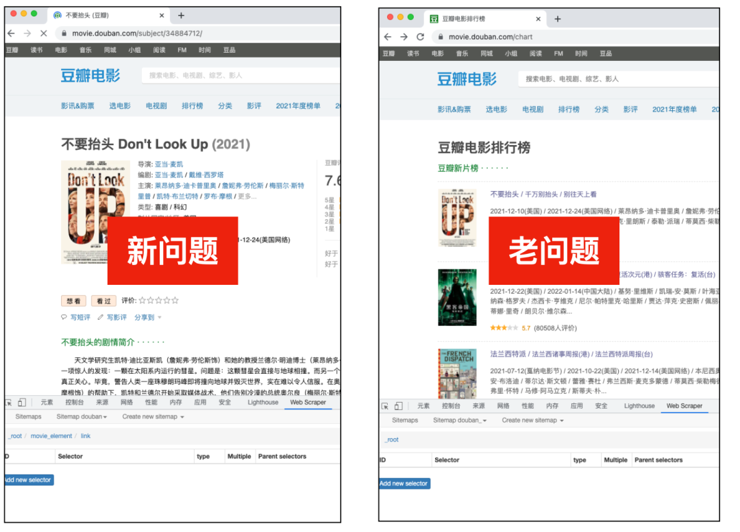 这里用动图来解释一下:是否选取“重复单元”,爬虫的行为有什么样的变化。
