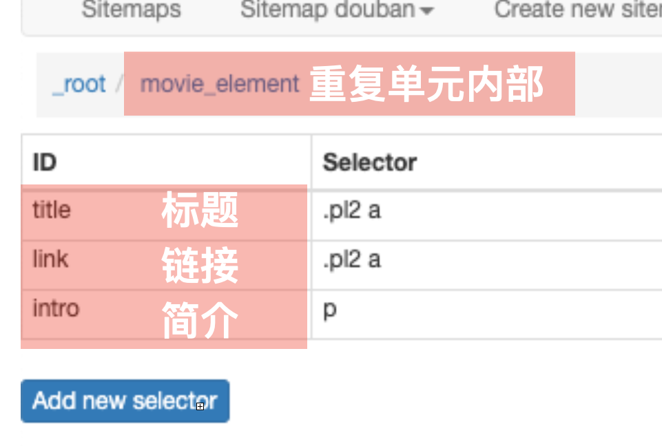 上一篇中,我们已经在“重复单元”的内部建立了针对电影名称的“selector”。