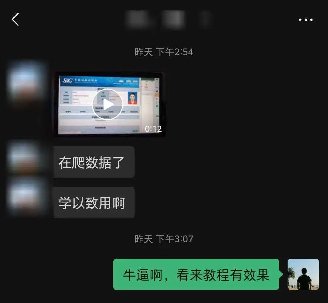 昨天收到了朋友的微信,说上个月看 我文章 学习的爬虫,现在已经用起来了。