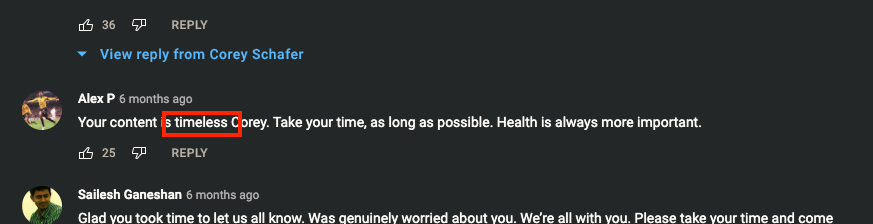 比如,我在油管上的编程老师已经很久没更新了,我还是会去看一下他的动态,于是就看到了下面这条评论。