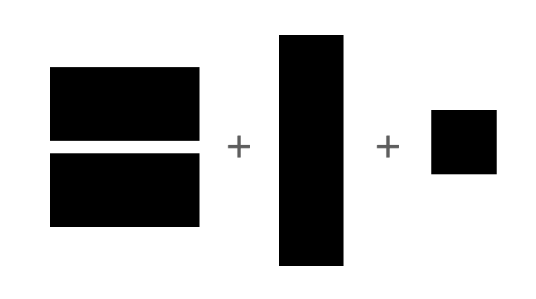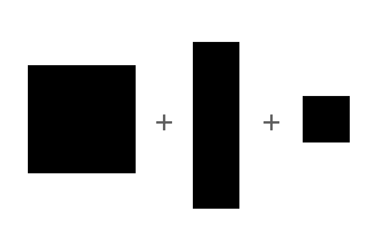 这里有三个几何图形,请将它们拼接成一个长方形。