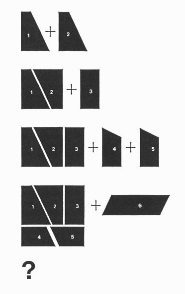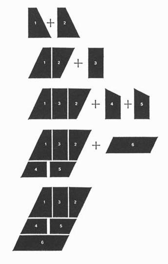 如果第一次把1和2摆成矩形,后面的所有图形都会被限制在“扩充矩形”的框架中,导致最后一个平行四边形无法融入。