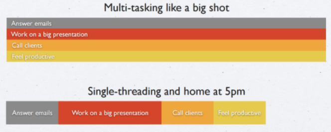 从上面的图片也能看出,每次只做一件事,比同时做很多事,更能节省时间。