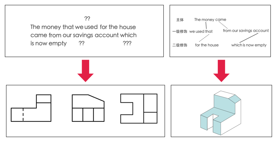 而所谓的“英语思维”,其实就是看到一句话时,能够利用英语的特点,构造出相应的“立体图”。