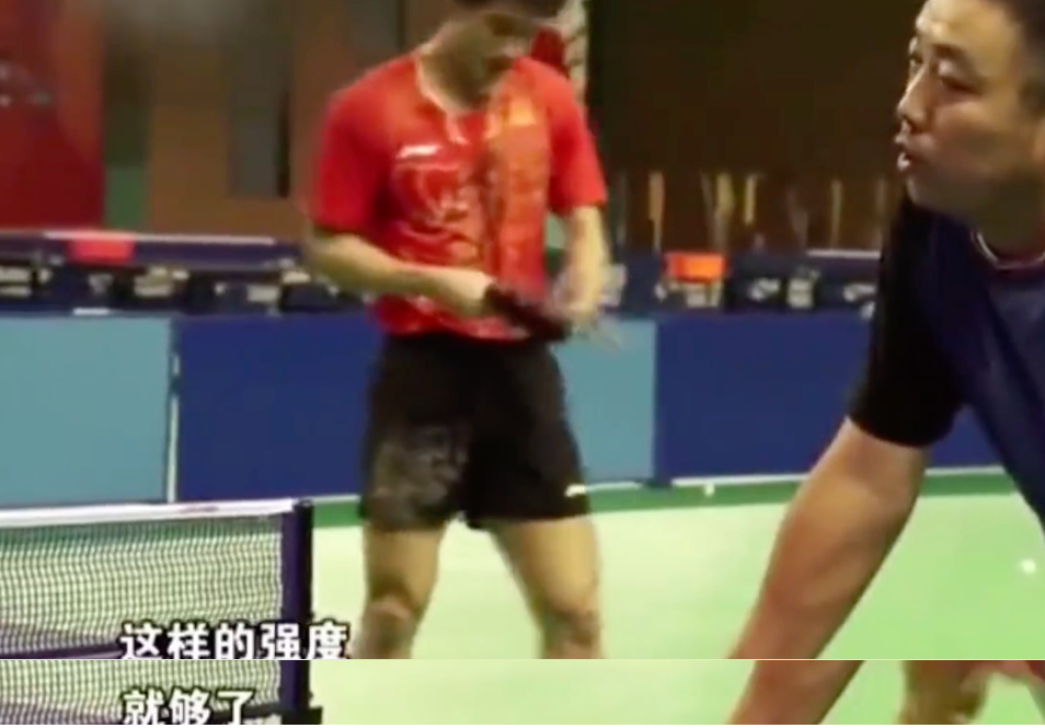 一个短视频中,刘国梁训练张继科,刘拼命发球,张拼命接球,一轮训练下来,两个人都大汗淋漓,穿着粗气。