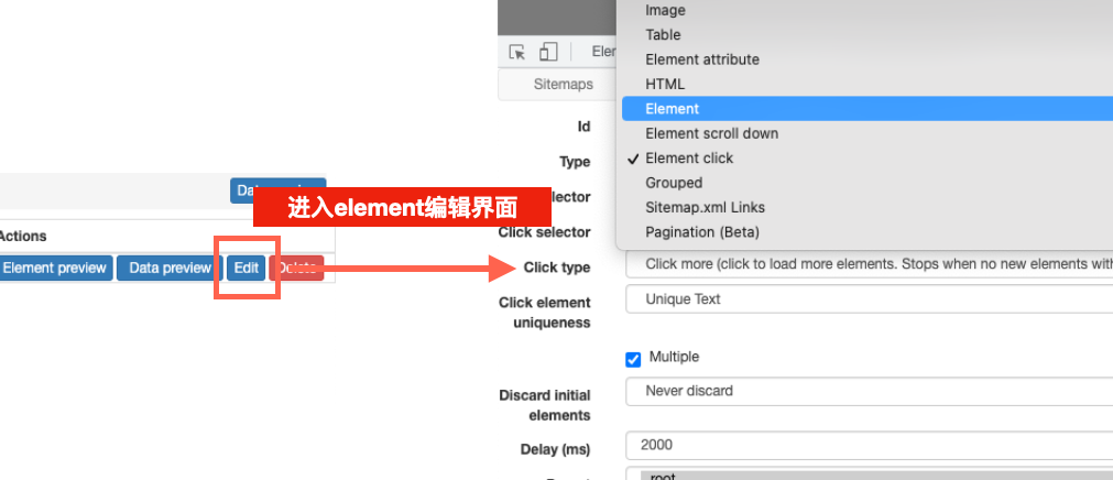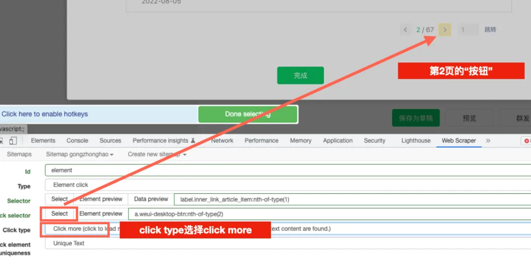 当我们选择element click当中的click标签时,是希望选中“下一页”这个按钮,以便它帮我们不停翻页,直到最后一页。