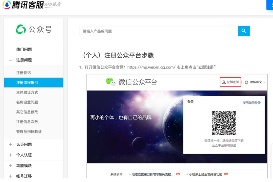 我在百度查了一下,腾讯自己就有一个完整的注册流程介绍: