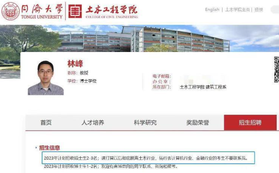 昨天在网上看到这张图片,同济大学的导师在招生信息写到: