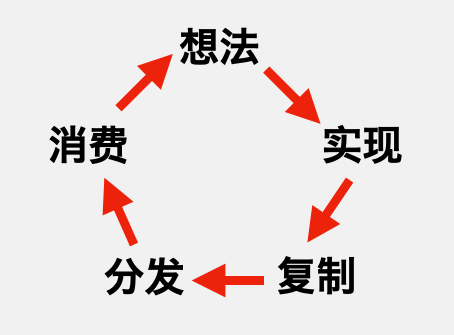 那些产生想法的创作者,同时也是内容的消费者。所以更加准确地说,这个信息传播链条应该是个闭环。