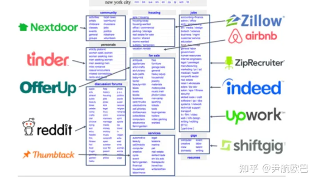 举个例子,Craglist是美国的广告网站,里面有很多版块,大家在上面发布信息。