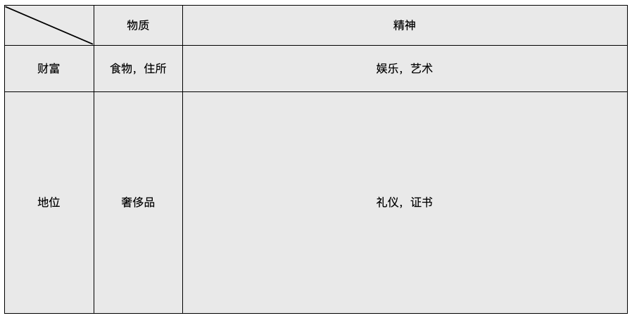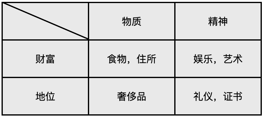 要了解需求当中的“财富”和“地位”的比例,我们需要简单问一个问题: