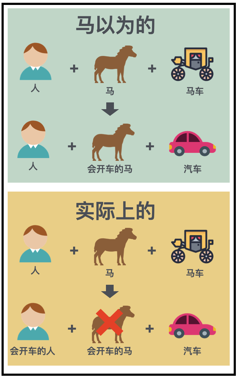 漫画里的马没有意识到,汽车想替换的不只是“马车”,而是“马车+马”。